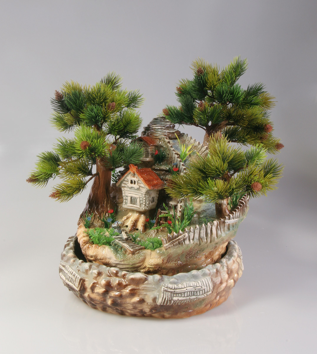 Фонтан "Кадки под деревом" 13,5*18*27 см (с подсветкой)