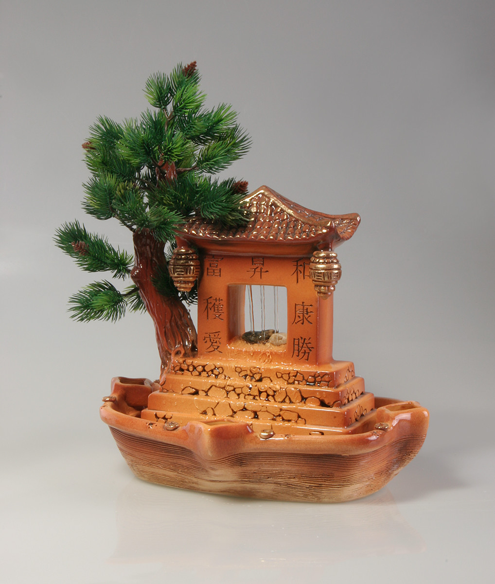 Фонтан настольный полистоун от сети свет "Пагода в лесу" 30х19х31 см
