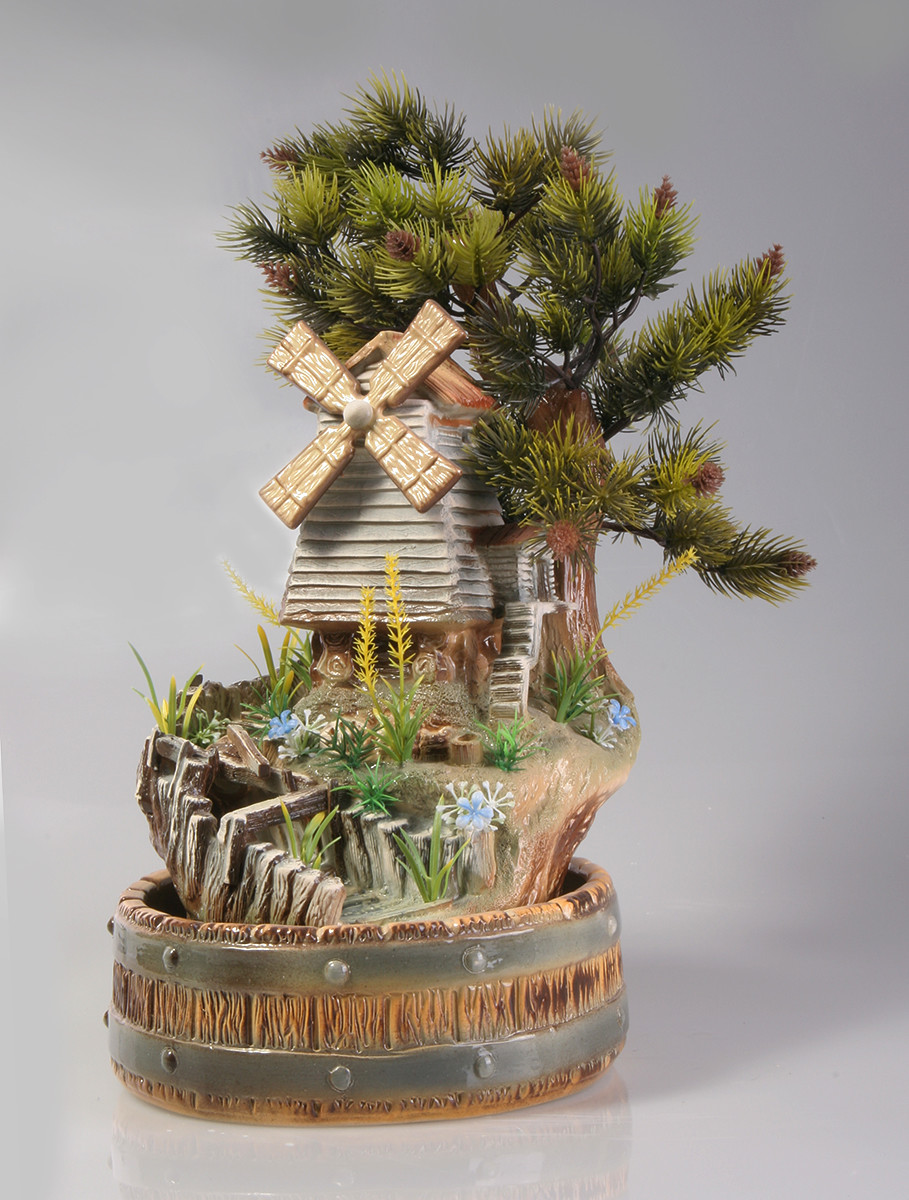 Фонтан настольный полистоун от сети "Водяная мельница" 21х18х15 см
