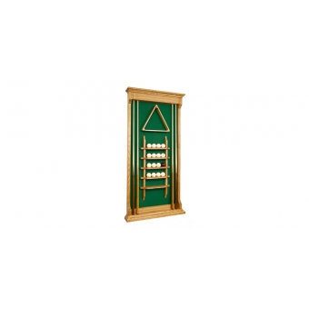 Большая настенная киевница Спортклуб предназначена для хранения 4-х киев, комплекта шаров. Четыре полочки для размещения шаров и ведения счета во время игры дополнены еще одной полочкой для бильярдных аксессуаров. В верхней части киевницы предусмотрен подвес для хранения треугольника. Изготовлена в стиле бильярдного стола "Спортклуб" из массива березы, дуба или ясеня, задняя стенка покрыта бильярдным сукном. Кии располагаются строго вертикально, что позволяет сохранять их прямолинейность. Размер: 900 х 120 х 1800