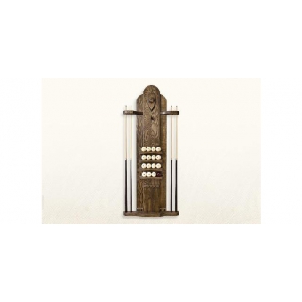 Большая настенная киевница Русич предназначена для хранения 4-х киев, комплекта шаров. Четыре полочки для размещения шаров и ведения счета во время игры дополнены еще одной полочкой для бильярдных аксессуаров. В верхней части киевницы предусмотрен подвес для хранения треугольника. Изготовлена в стиле бильярдного стола "Русич" из массива березы, дуба или ясеня, задняя стенка покрыта бильярдным сукном. Кии располагаются строго вертикально, что позволяет сохранять их прямолинейность. Производство - Белоруссия.