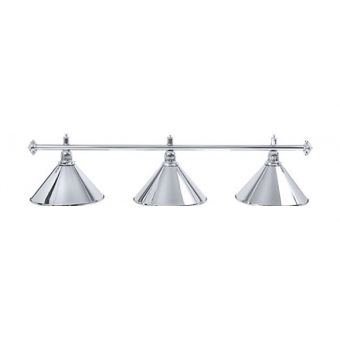 Изящная лампа классического дизайна органично впишется в любой интерьер. Устойчивые к механическим повреждениям металлические плафоны на хромированной штанге обеспечивают не только качественное освещение игрового поля, но и создадут уютную атмосферу в бильярдном клубе или кабинете. Бильярдный светильник комплектуется цепочками и чашками для крепления к потолку.