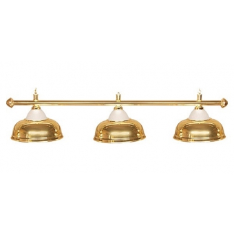 Светильник бильярдный "Crown Gold" классического дизайна органично впишется в любой интерьер. Устойчивые к механическим повреждениям металлические плафоны на хромированной штанге обеспечивают не только качественное освещение игрового поля, но и создают уютную атмосферу в бильярдном клубе или кабинете. Вставки из стекла рассеивают свет по всему пространству над бильярдным столом, окружая его мистическим ореолом. "Crown Gold" комплектуется цепочками и чашками для крепления к потолку.