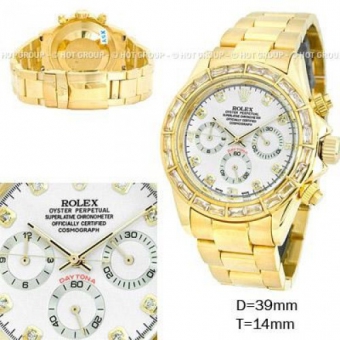 Цена: 4090 р. Доставим завтра Производитель: Rolex Легендарные наручные часовые изделия с логотипом короны отличаются блестящим качеством, изысканными линиями, они созданы для тех, кто знает себе цену! Представленная модель с золотым напылением, выполненным по технологии IPG, закрепляется на запястье посредством стального браслета с раскладывающейся застежкой.Мужские часы Rolex Oyster Perpetual Cosmograph Daytona Diamond Mens Watch от общепризнанного производителя как нельзя лучше символизируют роскошную, сверкающую и полноценную жизнь своего обладателя! Это хронограф, который посредством точек и штрихов отображает секунды, минуты и часы на циферблате корпуса диаметром 39 мм, толщиной 14 мм.О надежности изделия говорит его работа на основе механического японского типа механизма с автоподзаводом и защита круглого корпуса сапфировым стеклом.
