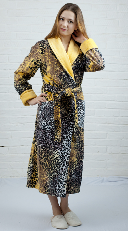 Цена: 3600 р. Для заказа укажите количество товара в пустых клетках таблицы: Махровый халат женский длинный из хлопка,воротник шалька. Махровый халат женский длинный выполнен в стиле Леопард, очень эффектный и элегантный. Состав: Хлопок