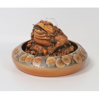 Цена: 12000 р. Доставим завтра Дополнительная комплектация: F78-PLT с туманом и разноцветной подсветкой 15000 руб. Настольный фонтан для офиса и дома с классическим талисманом богатства по фен-шуй — трёхлапой денежной жабой, которая сидит на горстке китайских монет и держит одну монету во рту. Денежная жаба считается самым эффективным талисманом фен-шуй, привлекающим деньги и увеличивающим благосостояние. Этот настольный фонтан имеет 18 см в высоту и наибольший диаметр 28 см. Размеры (ВxШxД): 18x26x28 см Особенности фонтана: