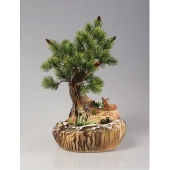 Настольный мини-фонтанчик, густо декорированный хвоей. Вода бьёт ключом из-под корней дерева. Размеры (ВxШxД): 37x26x26 см Особенности фонтана: