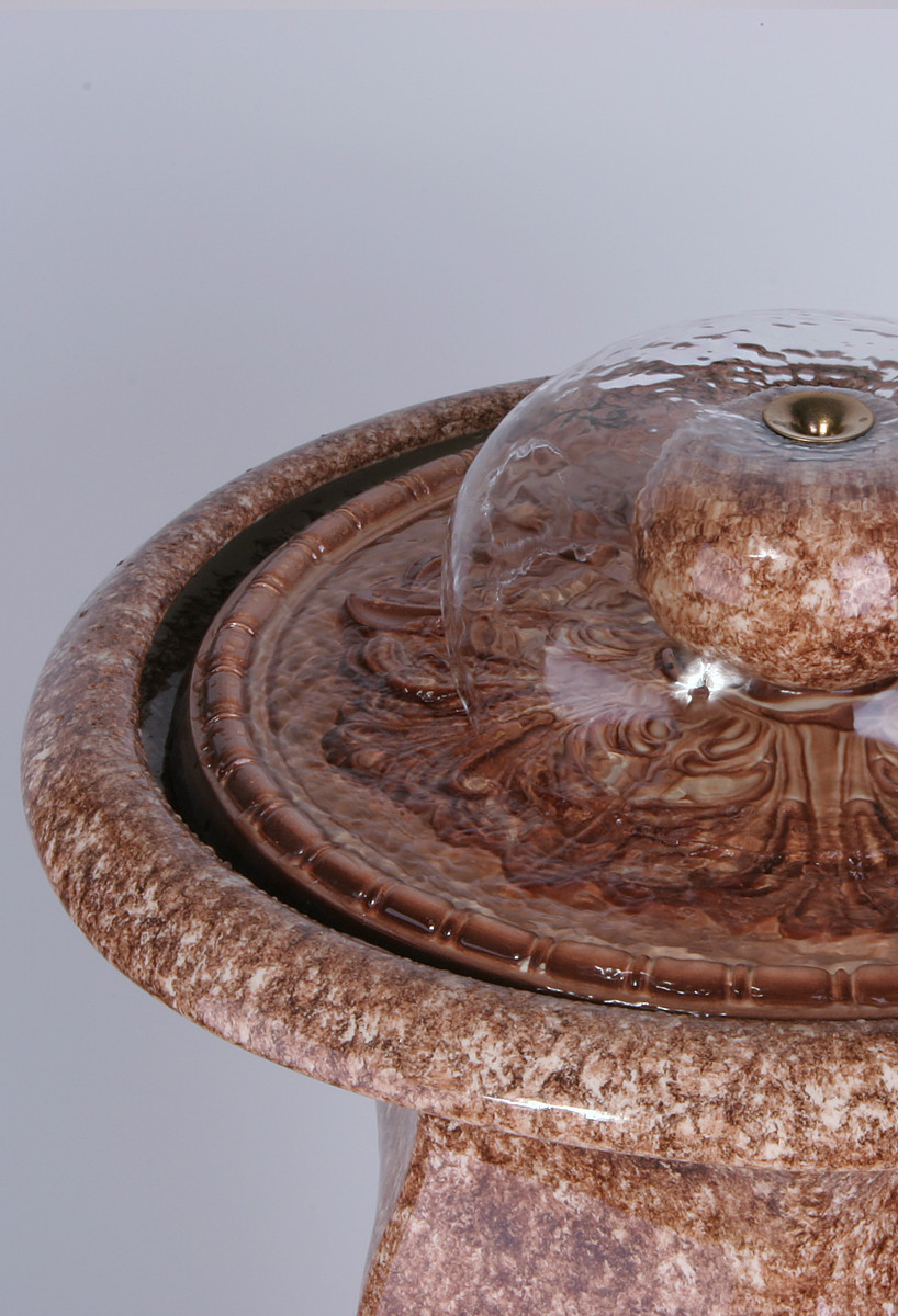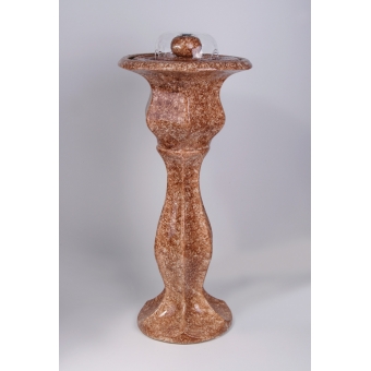 Цена: 50000 р. Доставим завтра Классический фонтан декорированный «под мрамор». В верхней части установлен рассеиватель, создающий водяную полусферу. Размер полусферы и уровень шума фонтана регулируются простым вращением верхней части рассеивателя. Размеры (ВxШxД): 103x47x47 см Особенности фонтана: