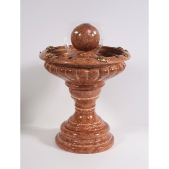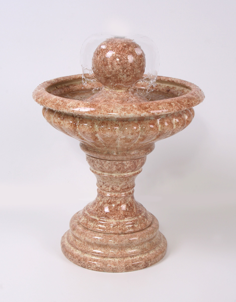 Цена: 39000 р. Доставим завтра Дополнительная комплектация: F316-PLT с туманом и разноцветной подсветкой 42800 руб. Небольшой напольный фонтан классической формы высотой 62 см. Диаметр водяного купола регулируется поворотом рассеивателя, который расположен в верхней точке шара. Размеры (ВxШxД): 62x48x48 см Особенности фонтана: