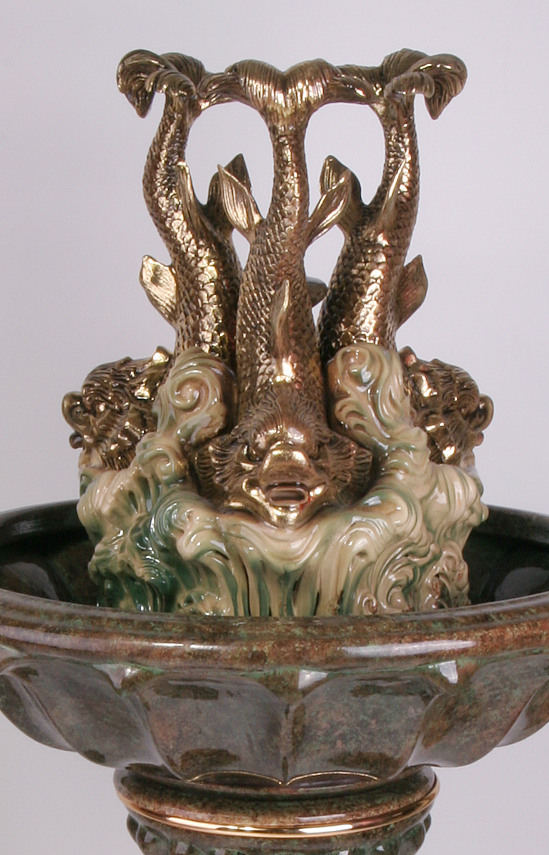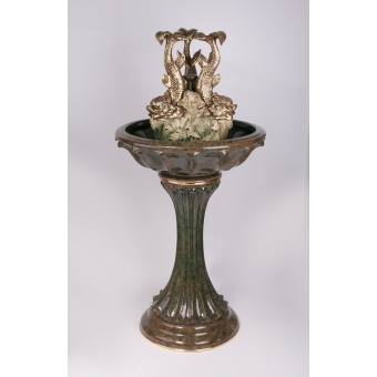 Цена: 125000 р. Доставим завтра Дополнительная комплектация: F321-PLT с туманом и разноцветной подсветкой 64300 руб. Напольный фонтан высотой 125 см, выполненный в классическом стиле. В основе композиции фонтана — три мифические рыбы. Источники воды расположены во рту рыб. Размеры (ВxШxД): 125x62x62 см Особенности фонтана: