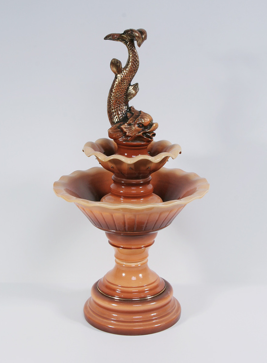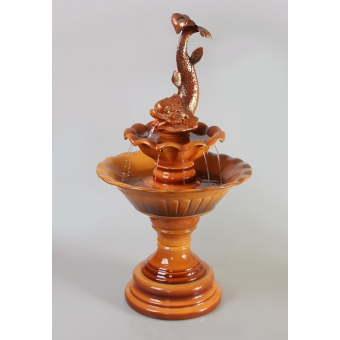 Цена: 45000 р. Доставим завтра Дополнительная комплектация: F319-PLT с туманом и разноцветной подсветкой 48800 руб. Невысокий, чуть менее метра в высоту напольный фонтан классической формы. Вода вытекает изо рта рыбы, попадая в верхнюю малую чашу, откуда через металлические трубки с характерным шумом перетекает в нижнюю большую чашу. Размеры (ВxШxД): 92x48x48 см Особенности фонтана: