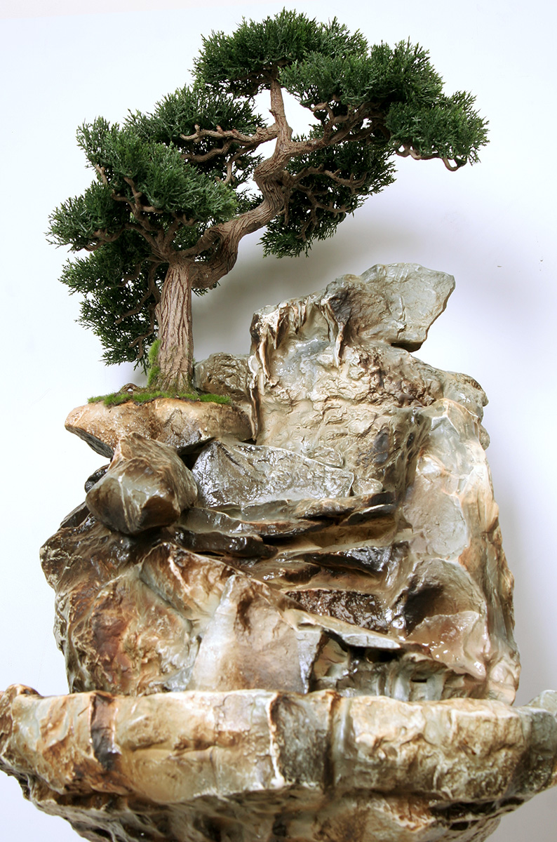 Цена: 60000 р. Доставим завтра Дополнительная комплектация: F363-PLT с туманом и разноцветной подсветкой 63800 руб. Напольный фонтан для загородного дома, кабинета руководителя или комнаты отдыха. Композиция состоит из сосны, растущей на каменистом водопаде. Источник воды расположен под верхним камнем скалы. Вода стекает по поверхности скалы в резервуар. Мощность потока воды легко регулируется переключателем на насосе. Размеры (ВxШxД): 130x42x42 см Материал — благородный экологически чистый фарфор. Покрытие — специальная глазурь. Служит вечно и легко чистится от налета.