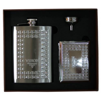 Ваша реклама Здесь 500 подарков | Каталог | Алкогольные аксессуары | Фляжки | Подарочный набор VIRON: фляжка 8oz, воронка, портсигар