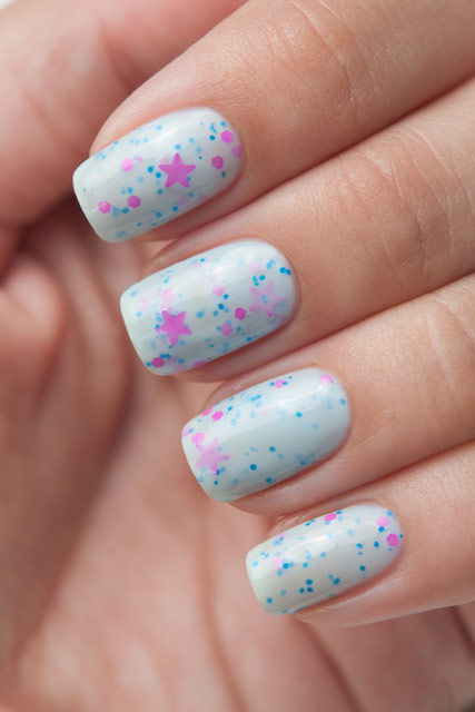 Цена: 250 р. Доставим завтра В бледно-голубой основе лака находится мелкий яркий синий глиттер, неоновые розовые звёзды и более крупные шестиугольники * акция не распространяется на сопутствующие товары, товары идущие по "акция дня" и товары помеченные галочкой.