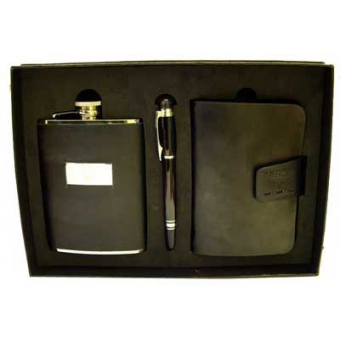 Ваша реклама Здесь 500 подарков | Каталог | Деловые аксессуары | Портмоне, портсигары, кошельки, визитницы, ключницы | Подарочный набор VIRON: фляжка 8oz, органайзер, ручка