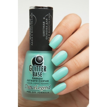 Разбелённая зеленовато-голубая мятная база для глиттеров. После высыхания становится чуть более тёмной, чем сразу после нанесения.