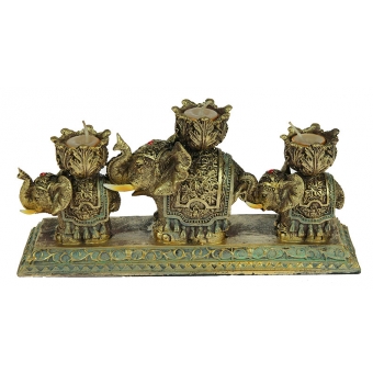 Ваша реклама Здесь 500 подарков | Каталог | Подсвечники и свечи | Свечи и металлические, фарфоровые, стеклянные подсвечники | Подсвечник "Три слона" на 3 свечи со свечами 21*6*10см