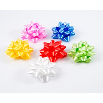Ваша реклама Здесь 500 подарков | Каталог | Все для упаковки подарков | Банты и украшения | Комплект бантов-звёзд из 6шт. простой 9см МИКС