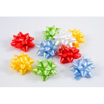 Ваша реклама Здесь 500 подарков | Каталог | Все для упаковки подарков | Банты и украшения | Комплект бантов-звёзд из 40шт. простой 6см МИКС