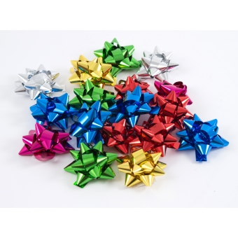 Ваша реклама Здесь 500 подарков | Каталог | Все для упаковки подарков | Банты и украшения | Комплект бантов-звёзд из 54шт. металл. 5см МИКС