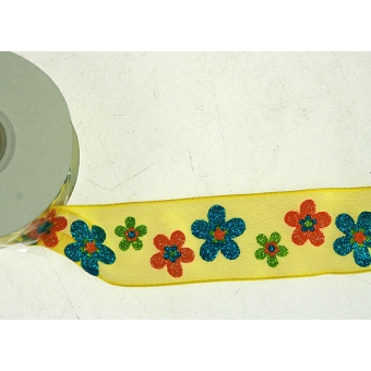 Лента тканная ЖЕЛТЫЙ с цветами 40мм*10ярд
