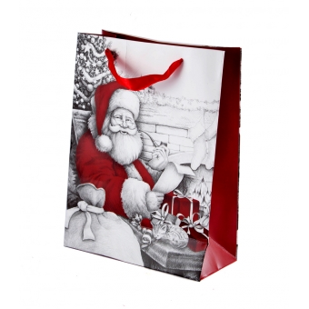 Пакет бум./ламинир. с глитером "Дед мороз с подарками" 30*42см (мин. заказ 12шт.)