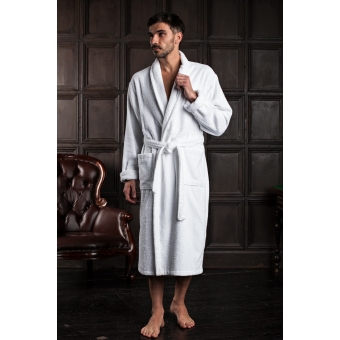 Классический длинный халат для мужчин с шалькой.Выполнен из высококачественного хлопка. Халат великолепно подойдет как для дома, так и для фирм и гостиниц.