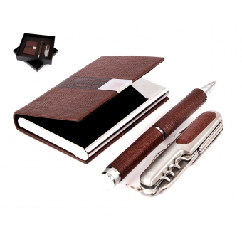 Ваша реклама Здесь 500 подарков | Каталог | Деловые аксессуары | Портмоне, портсигары, кошельки, визитницы, ключницы | Подарочный набор: визитница, ручка, нож складной