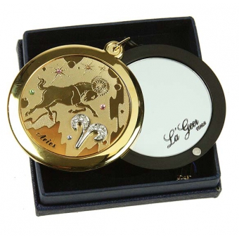 Ваша реклама Здесь 500 подарков | Каталог | Оригинальные подарки | Зеркала знаки зодиака LA GEER | Зеркальце со стразами Овен серия LA GEER