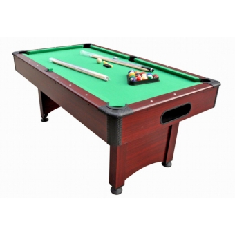 Стол для игры в пул "БГ-015" с системой ската шаров, 6 футов, борта и опоры из ламинированного МДФ, основа поля из МДФ толщиной 15 мм., лузы из пластика, декоративная оконтовка на углах из пластика, борта с резиновыми амортизаторами, стол оснащен специальными домкратами ножек для регулирования высоты стола, цвет махагон. К столу прилагается комплект шаров диамером 46 мм., два кия 146 см., два мела, щетка для чистки сукна, треугольник. Размер бильярдного стола 180Х96СМ Размер упаковки 187X103X23СM Вес 56 кг. Производство Китай.