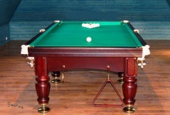 Бильярдный стол "Адьютант" (пул) - классический бильярд, изготовленный на современном высокотехнологичном оборудовании. Стол выполнен из массива красного дерева и влагостойкого МДФ (отличное сочетание для помещений с перепадами температур). Основа игрового поля – сланец Ардезия, профессиональные лузы-скаты. Все комплектующие бильярдного стола "Адьютант" только европейского производства. Бильярдный стол «Адъютант» может подвергаться длительной и интенсивной эксплуатации без ущерба своему качеству. Возможен вариант на итальянской плите
