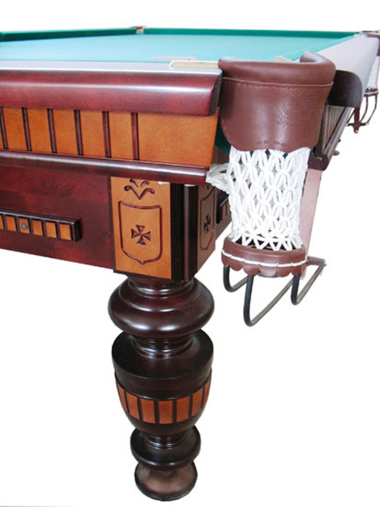 Стол "Идальго" для пула отличается кажущейся простотой дизайна и нестандартным декоративным оформлением. Двухцветная гамма выгодно отличает стол от любого другого бильярда, соответствуя модным тенденциям бильярдного мира. "Идальго" - бильярд на тяжелом камне из стандартной спортивной линейки, не претендующий на статус коллекционного. Борта из дуба или ясеня и каркас из березы являются оптимальным решением при создании стола средней ценовой категории. Тщательно отобранные и подогнанные плиты из природного сланца повышенной толщины составляют основу игрового поля, использование качественных резины и сукна обеспечивает отличные игровые качества. Фирменные секреты, примененные при обтяжке и креплении бортов, улучшают отскок шара. Специальная конструкция позволяет несколько раз собирать и разбирать стол без потери игровых характеристик.