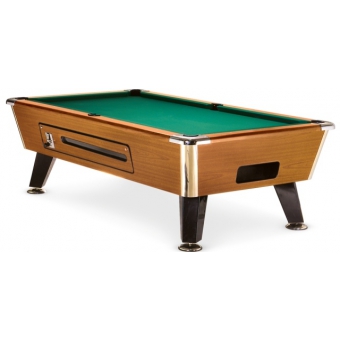 Стол полностью покрыт прочным огнестойким пластиком (Германия). На данную модель можно заказать любой цвет из имеющихся в наличии. На лузах – декоративные угловые накладки и прочные пластиковые отбойники. Основа игрового поля – из высококачественного природного сланца. Оснащен встроенным жетонным механизмом (Италия) и нескручиваемым счетчиком партий.