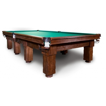 Бильярдный стол «Шале» для снукера изготовлен из массива отборного дуба, выросшего на высокогорьях Кавказа. Специалисты компании «ИГРА» освоили особый метод старения древесины ведущих мебельщиков Италии и Испании, который успешно применяется при изготовлении бильярдных столов «Шале». Оригинальное конструктивное решение с применением композитных материалов позволило придать системе «борта-рама-ноги» уникальную прочность и устойчивость. Дополнительную прочность придает столу квадратное сечение ног-опор. Луза изготавливается под заказ в различных вариантах: латунная скоба, натуральная кожа; латунная скоба с ручным плетением макраме; латунная скоба со скатами. Сукно - Iwan Simonis (Бельгия). 3 модификации – для русской пирамиды, американского пула и снукера. Производство Россия.