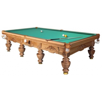 Стол Цезарь (снукер) изготавливается из тщательно отобранного массива дуба. Благодаря особой полировке и специальной лакировке хорошо видна неповторимая текстура древесины. Своеобразный "древесный мрамор" украшают резные накладки. Массивные, под античные капители, ноги добавляют столу помпезности. Разделяй и властвуй. Этот принцип римских цезарей неприемлем для нашего бильярда. Наоборот, он способствует объединению и сплочению людей. Бильярд "Цезарь" для снукера обладает отличными игровыми характеристиками. В качестве основы игрового поля используется плита из природного сланца толщиной 38-45 мм. Сукно – "Iwan Simonis" (Бельгия). Встроенная система домкратов плит и регулируемые опоры ножек обеспечивают горизонтальность поверхности игрового поля. Производство РуптуР, Белоруссия.