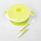 Детские наборы посудыНабор детской посуды Basic, 4 предмета: миска на присоске 400 мл, крышка, ложка, вилка, от 5 мес., цвет лайм