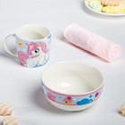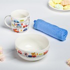 Набор детской посуды "Сладкоежка", кружка 250 мл, тарелка глубокая 13 см, полотенце 30 х 30 см