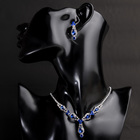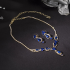 Набор 2 предмета: серьги, колье "Цветочное трио", цвет тёмно-синий в золоте