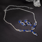 Набор 2 предмета: серьги, колье: "Моник" капля с кружочком, цвет бело-синий в серебре, 30 см 44556