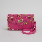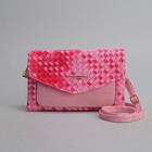 Клатч женский, 3 отдела на молнии, длинный ремень, цвет розовый