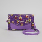 Клатч женский, 3 отдела на молнии, длинный ремень, цвет фиолетовый