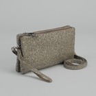 Клатч женский, 2 отдела на молниях, наружный карман, с ручкой, длинный ремень, цвет бронзовый