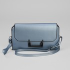 Клатч женский, 3 отдела на клапане, длинная цепь, цвет синий