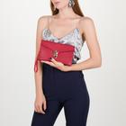 Клатч женский, 3 отдела на клапане, длинная цепь, цвет красный