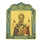 Икона Николая Чудотворца в киоте "Спаси и сохрани" на подставке