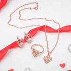 Комплекты бижутерииГарнитур 3 предмета: серьги, кулон, кольцо безразмерное "Варьете" цветок, цвет белый в золоте, 45 см