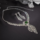 Набор 2 предмета: серьги, колье "Феникс" капля, цвет бело-изумрудный в золоте
