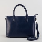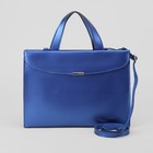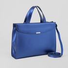 Сумка женская, 3 отдела на молнии, наружный карман, длинный ремень, цвет синий