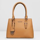Сумка женская, 2 отдела на молнии, наружный карман, длинный ремень, цвет светло-коричневый
