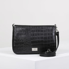 Сумка жен 1228B, 28*8*19, 1 отд на молнии, н/карман, длин ремень, крок черный